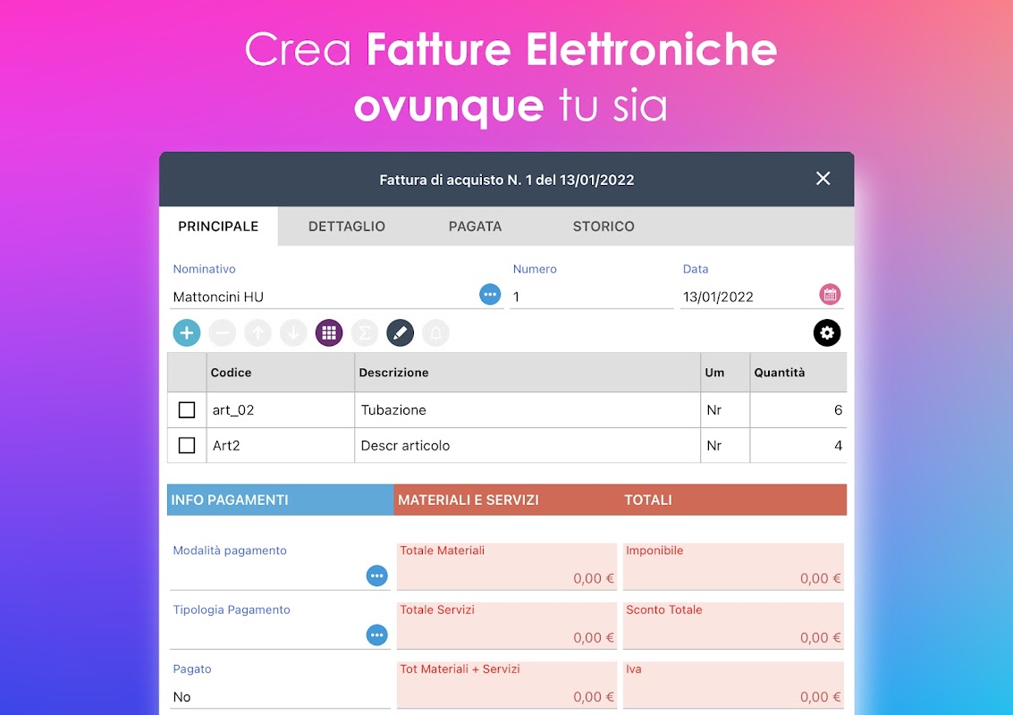 Akhirnya anda boleh membuat bil di mana sahaja anda berada, walaupun tanpa internet. Selain Apl, anda juga mempunyai Program Windows dan versi Web. Disyorkan untuk perniagaan kecil, walaupun pada asas kadar rata, yang ingin memudahkan pengebilan Itali dan asing serta bekerja dengan apl iOS dan Android.