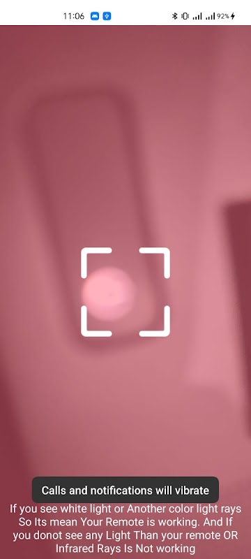 Alat kawalan jauh banyak peranti kamera tersembunyi juga mempunyai ciri inframerah di dalamnya sehingga aplikasi kami dapat mengesan kamera tersembunyi. Sekiranya pemancar dapat dilihat daripada maksudnya, melewati sinar inframerah Alat kawalan jauh adalah normal. Cukup buka Remote Tester dan lihat melalui penapis kami. apabila anda menghadap alat kawalan jauh ke arah kamera telefon, anda akan melihat cahaya. Lampu ini bermaksud alat kawalan jauh anda berfungsi. Sekiranya lampu pemancar alat kawalan jauh tidak dapat dilihat ketika butang ditekan, ada kemungkinan bateri mengalami Kerusakan. Tukar ke bateri baru dan periksa berfungsi atau tidak pemancar menyala. Penguji Jauh IR ini juga dapat membolehkan anda mengesan kamera pengintip IR inframerah.