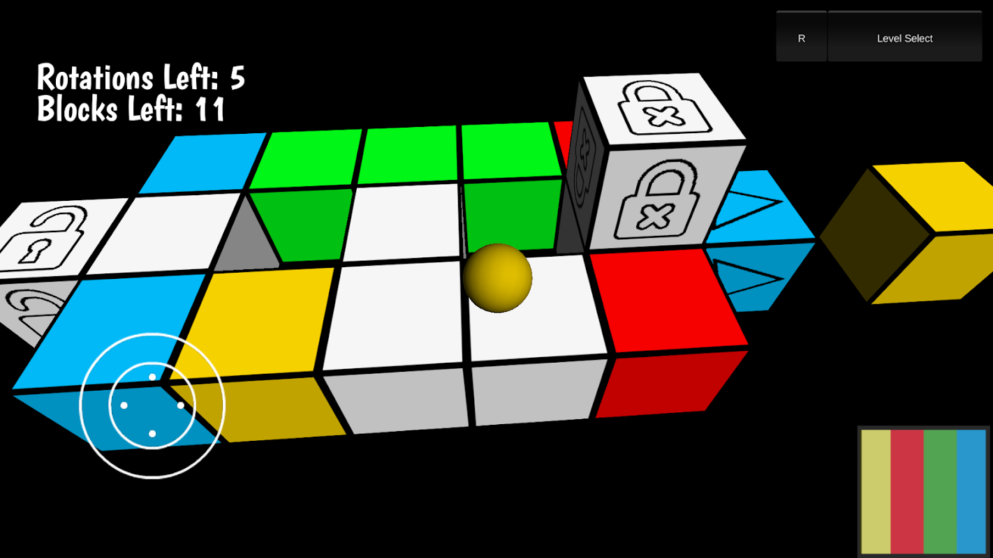 Your objective is to turn all tiles within the level white by colliding with the colorful tiles with the same color as they are, after turning all tiles to white you can move to the next level.