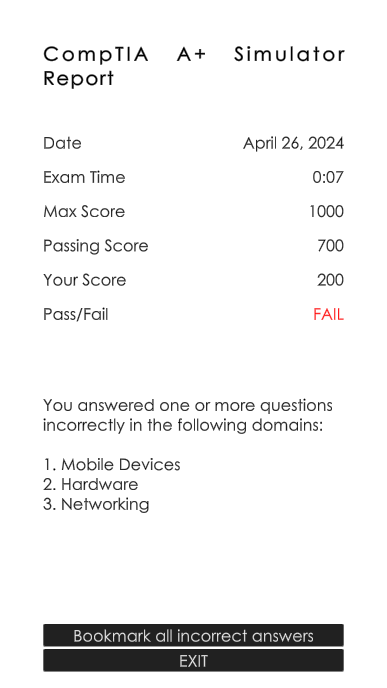 The simulator mode is created to replicate the actual exam rules to help you go through a mock exam prior to your actual exam.