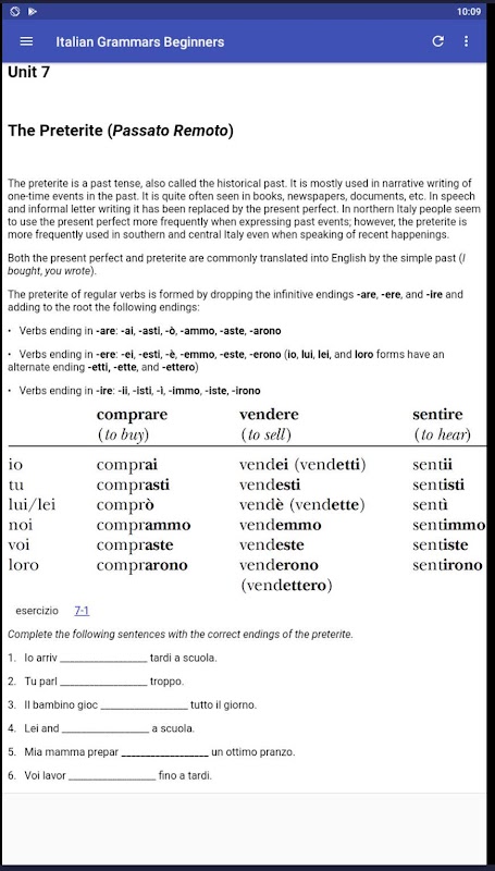 Italian Verb Tenses direka untuk meningkatkan kemahiran dan pengetahuan pelajar-pelajar awal dari bahasa Itali. Mempelajari cara mengatasi kata kerja dengan betul adalah tugas yang sukar dalam setiap bahasa tetapi lebih banyak lagi dalam bahasa Itali kerana banyak tenses dan kata kerja yang tidak teratur. Betul conjugating kata kerja adalah bahagian yang sangat penting dalam bercakap dan menulis dengan baik, tetapi seseorang juga harus memahami keperluan untuk menggunakan kata kerja satu sama lain dan alasan untuk memilih setiap kata kerja. Ia boleh menjadi sukar; Namun, dengan masa, dedikasi, amalan, dan konsistensi seseorang dapat mencapai hasil yang sangat baik.