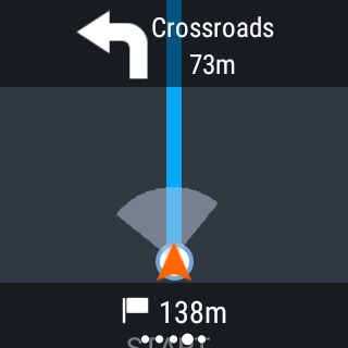 Select type of destination from the menu (convenience store, cafe, family restaurant, station, fast food) , otherwise enter the destination by voice input on your watch.