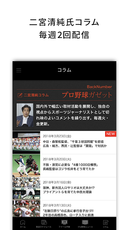 J:COMプロ野球アプリ 放送スケジュール 3.4.1