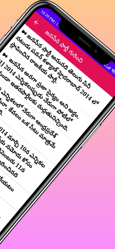 Aplikasi ini menyediakan maklumat terperinci tentang parti Janasena.