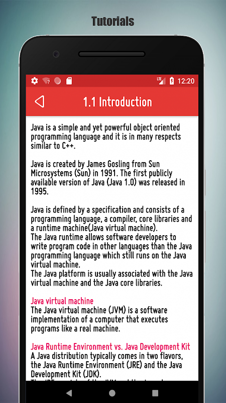 Permohonan ini membolehkan anda untuk membawa bahan-bahan pengaturcaraan Java dalam telefon anda.