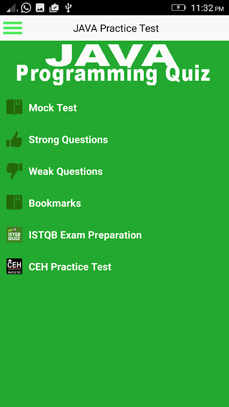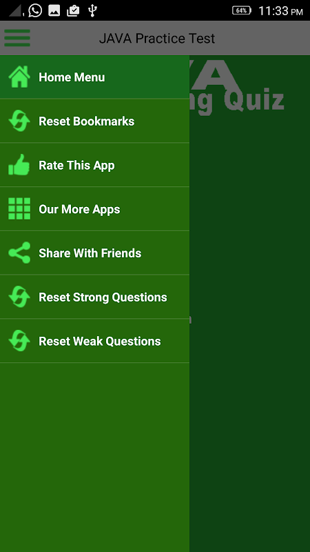 * Depends up on your quiz this app automatically counts your number of Weak & Strong questions in the taken Java Quiz.