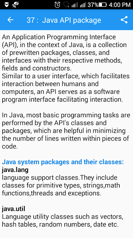This app is not made with an intention to earn money by putting advertisements in it. Therefore it will help a lot of peoples who are fed up with advertisements in JAVA tutorial apps.