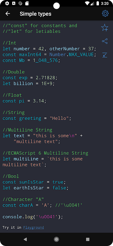 • Aplikasi ini merupakan alat yang baik semasa peperiksaan atau persediaan untuk temu duga kerana ia mengandungi rujukan kepada operasi yang kerap digunakan dalam bahasa pengaturcaraan yang berbeza.