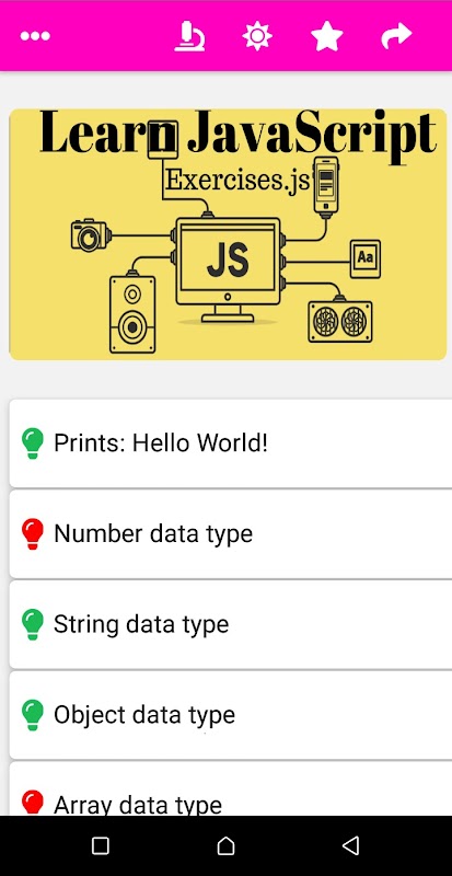 Aplikasi ini dapat membantu anda mempelajari bahasa JavaScript menggunakan latihan