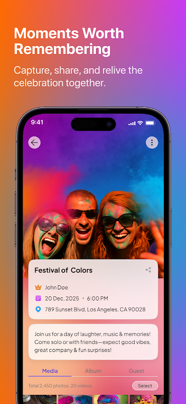 * Share invites with a QR code or event code so guests can jump straight into your event without any friction.