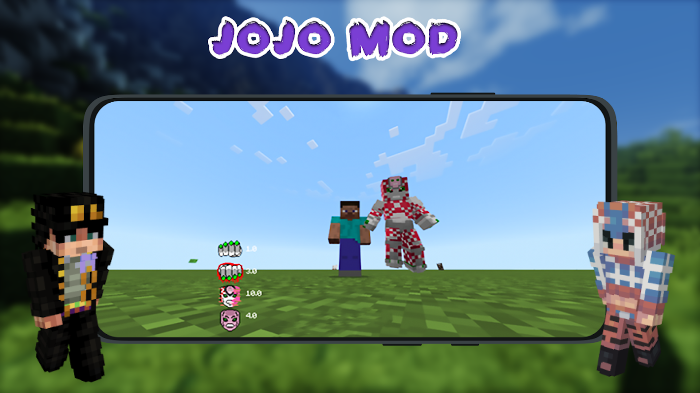 Adakah anda suka anime atau manga? Pernahkah anda mendengar tentang JoJo? Adakah anda ingin menambah watak kegemaran anda ke dalam alam Minecraft? Kami berbesar hati untuk mempersembahkan Mod Jojo kami Untuk Minecraft PE. Addon ini memberi anda 2 pertarungan khas dari cerita kelima dan keenam JJBA. Anda boleh menjadi lebih kuat, dan semua musuh akan takut kepada anda dengan tambahan ini, kerana anda akan mempunyai kemahiran baru. Masuk dan lihat!