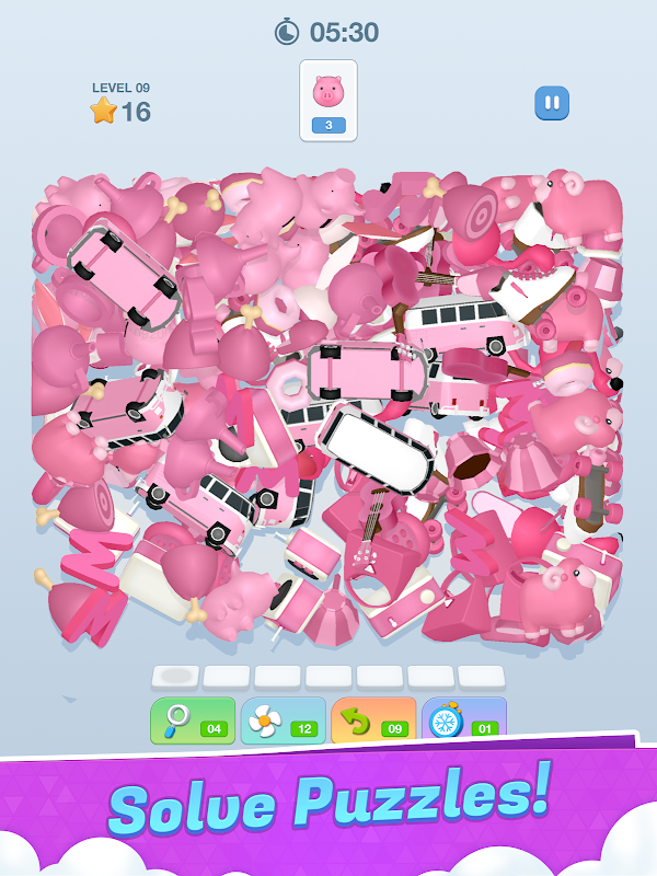 Cari tiga objek 3D yang sama dan kumpulkan!