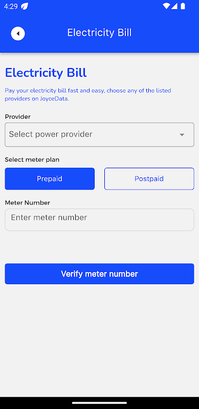 JoyceData36 menawarkan akses pantas dan mudah untuk membeli data, masa siaran, elektrik dan tv kabel pada kadar yang tiada tandingan. Ia menyokong pembekal disko elektrik dan tv kabel utama di Nigeria. Sertai hari ini dan nikmati faedah bersama berjuta-juta warga Nigeria yang mempercayai platform ini.