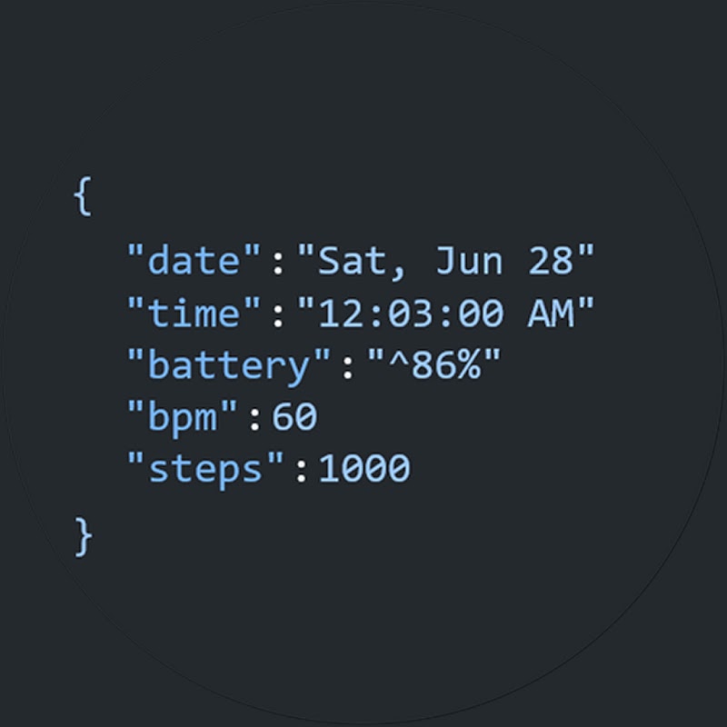 Muka jam gaya kod JSON minimalis untuk Wear OS.