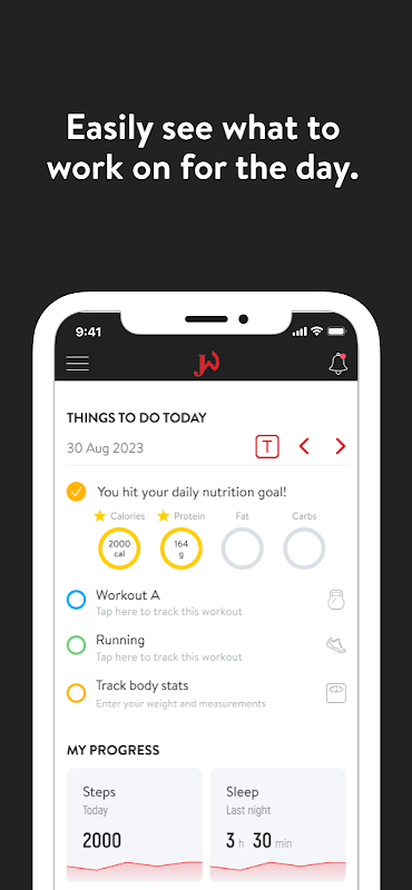 Dengan Apl JW, anda akan mendapat akses kepada program senaman yang direka khusus untuk membantu anda mencapai matlamat kecergasan dan kesihatan anda! Anda boleh mengikuti & menjejaki senaman anda, pemakanan anda, tabiat gaya hidup anda, ukuran dan hasil–semuanya dengan bantuan jurulatih anda.