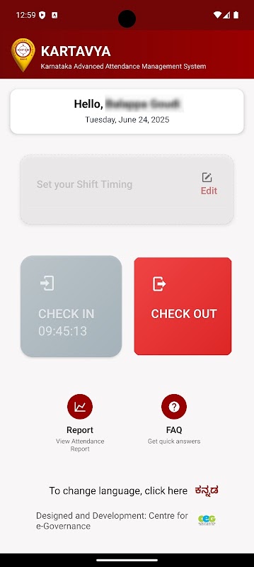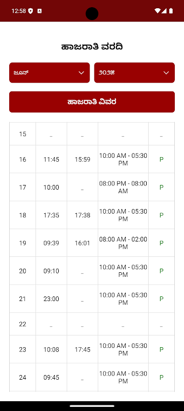 Permohonan untuk kakitangan kerajaan Karnataka menandakan kehadiran.