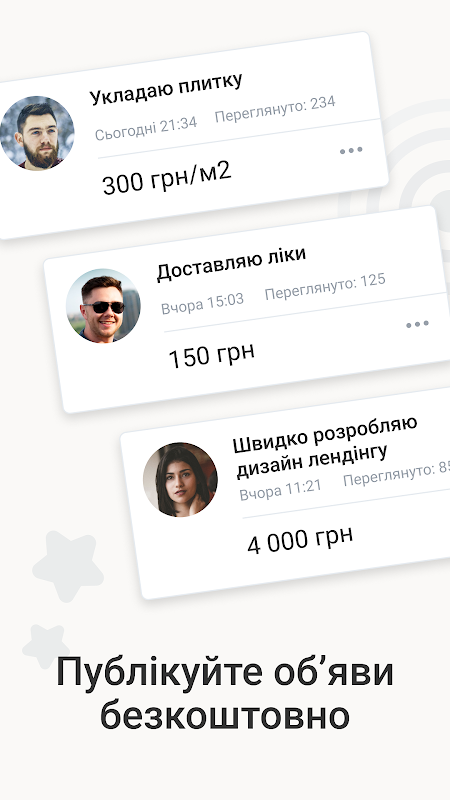Di mana sahaja anda berada, anda hanya perlukan telefon pintar dan akses internet anda. Kebanyakan pakar kami sedang mencari kerja berdekatan dengan rumah di Kyiv, Dnipro, Zhytomyr, Zaporizhia, Ivano-Frankivsk, Kryvyi Rih, Kropyvnytskyi, Lutsk, Lviv, Mykolayiv, Odesa, Poltava, Vinnytsia, Rivne, Sumy, Kharkiv, Kherson !