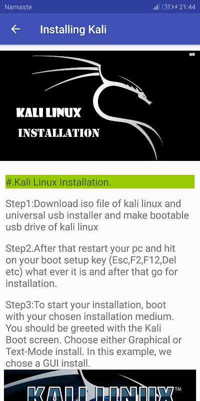 Tutorial app specially for Kali Linux beginners.Enjoy!