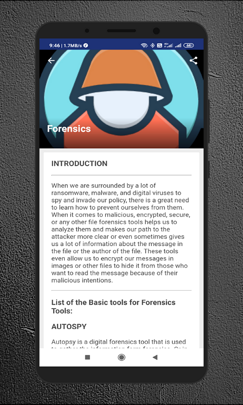 This app is beneficial and a guide to ethical hackers to know about various tools of Kali Linux and have a brief view.