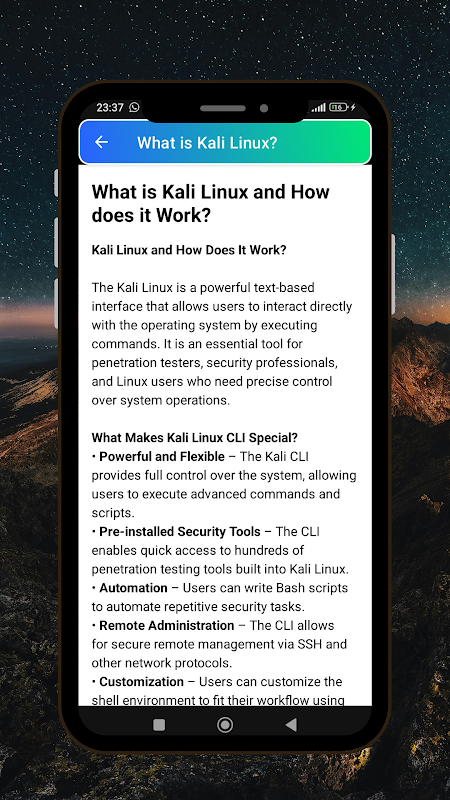 Whether you're a beginner or an advanced user, the Kali Linux app is your go-to resource for mastering one of the most powerful cybersecurity platforms in the world. Designed for hackers, penetration testers, and IT professionals, this app provides everything you need to learn, practice, and excel in Kali Linux.