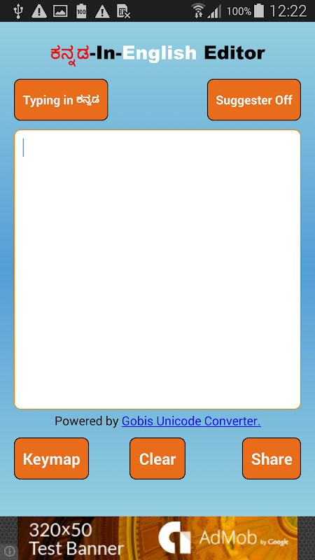 Kanglish - Kannada in English editor allows to to type Kannda words in English.