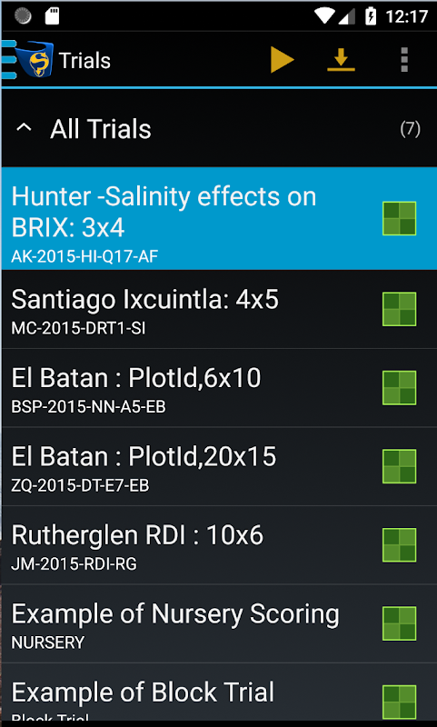 Sifat mungkin mempunyai julat nilai yang dipratentukan untuk membenarkan pemarkahan satu sentuhan menggunakan pendekatan "pilih daripada senarai". Anda boleh mengaitkan banyak Sifat untuk Plot/Sub-Plot dalam Percubaan tetapi pilih subset daripada ini untuk dijaringkan semasa medan tertentu lawatan pemarkahan.