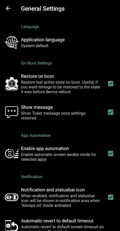 Aplikasi yang sangat berguna dan mudah digunakan yang membolehkan anda menukar tetapan tamat masa skrin telefon dengan cepat, menetapkannya kepada sentiasa hidup atau kembali kepada pilihan sebelum tamat masa paparan.