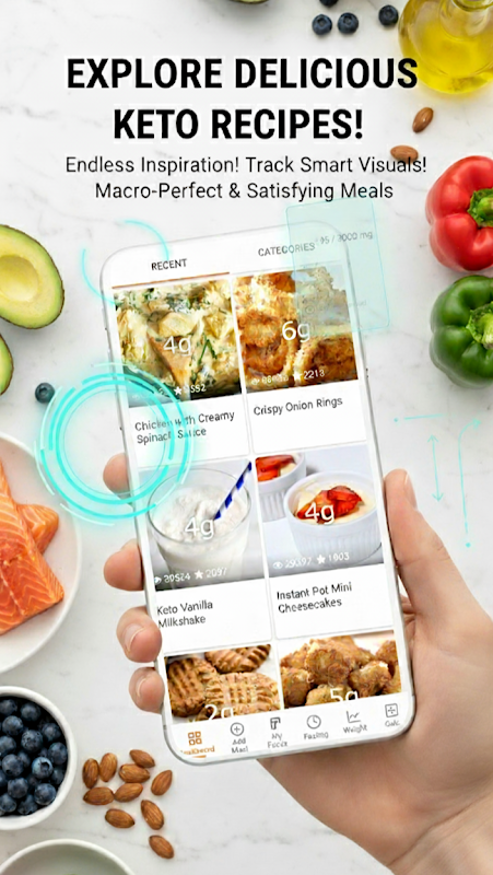 Muat turun Resipi Diet Keto hari ini dan nikmati resipi keto terbaik sambil menjejaki makro, puasa, berat, BMI, air dan kalori anda—semuanya di satu tempat.