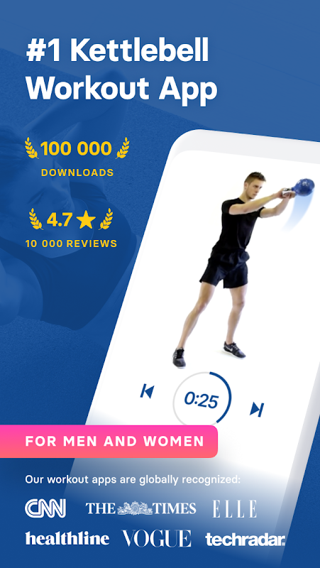 Kettlebell latihan adalah aplikasi latihan video, yang memberikan anda sesi senaman penuh dengan kettlebell.