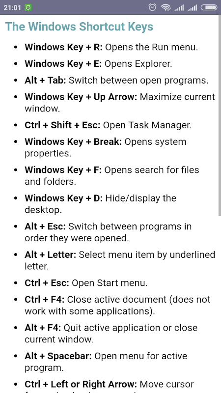 Biasanya Papan Kekunci Semua kekunci pintasan mengandungi setiap jenis kekunci pintas yang digunakan dalam komputer untuk kemudahan. Dengan menggunakan aplikasi ini, anda akan dapat mengendalikan PC anda dengan bijak. Aplikasi ini sangat mudah dan senang digunakan. Antaramuka ini sangat mesra.