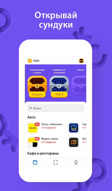 Terima hadiah dari syarikat di bandar anda setiap hari! Buka peti untuk mendapatkan mata atau dari setiap pembelian, ajak rakan, pelajari tentang promosi paling menarik di bandar anda!