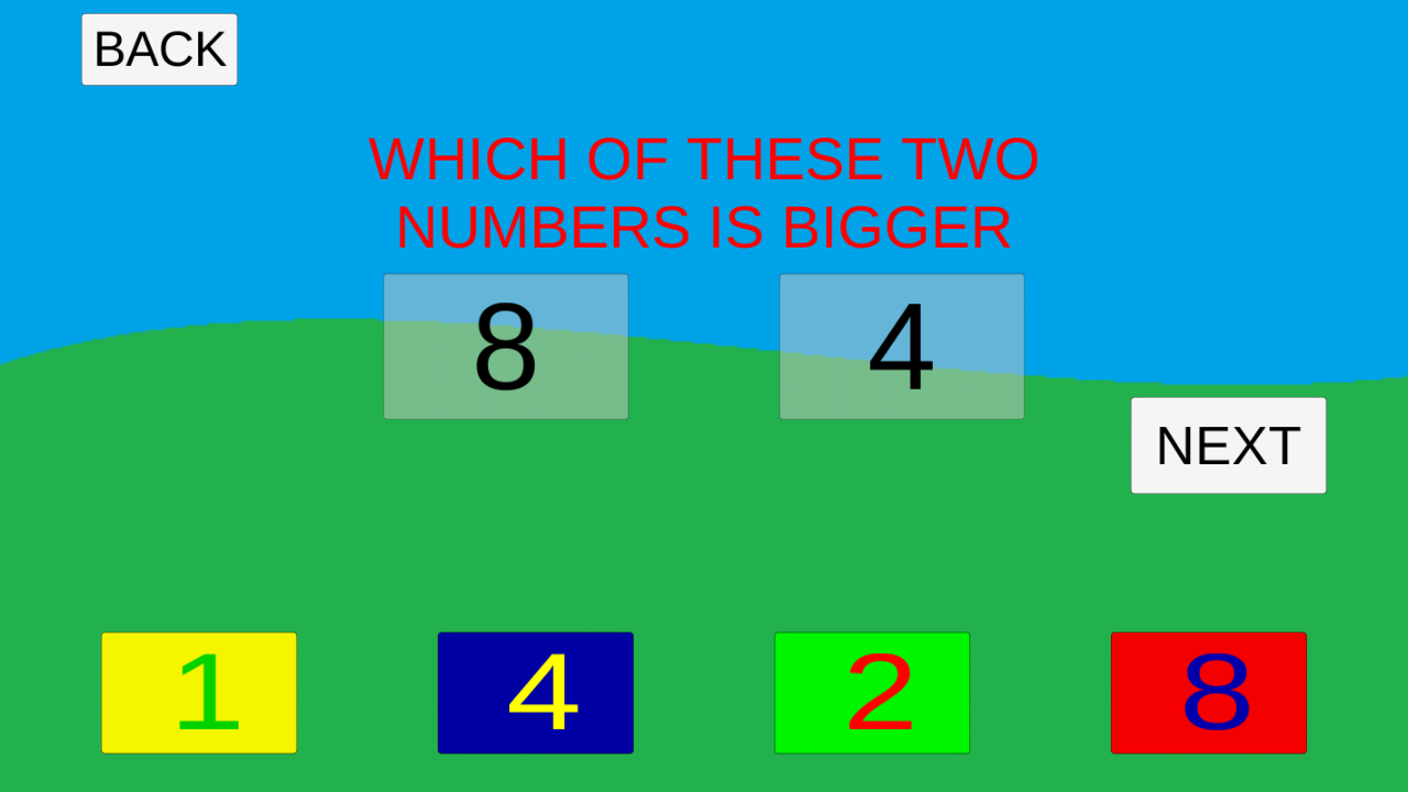 The little ones can choose between finding a bigger number, or math with adding, subtracting, multiplying or dividing.