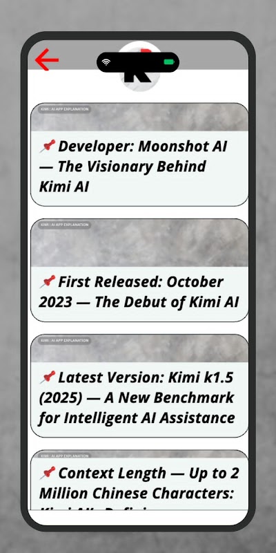 Mula belajar dengan Kimi: Penjelasan Apl AI kami, ketahui panduan dan penjelasan am di dalam aplikasi ini dengan antara muka pengguna yang ringkas dan mudah.