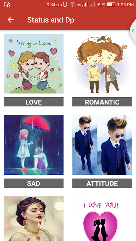 In this Application You can Find Various Category of Status and Dp and they are as follows