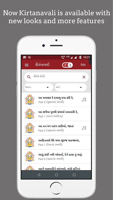 - Semua Kirtans terdapat di Gujarati dan Lipi Inggeris.