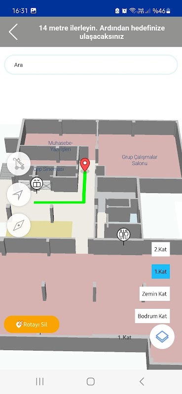 Anda boleh mendapatkan navigasi selekoh demi selekoh ke tandas terdekat, lif atau tempat terpilih.