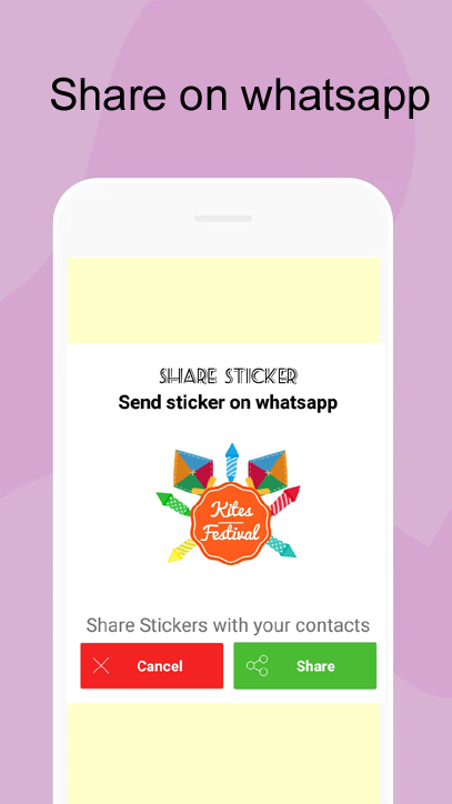 Install our app. After installing this sticker app, your messaging app automatically starts showing our sticker pack in that app’s sticker area. Just go to sticker area of that app and choose our kites stickers page. Send any sticker in your personal or group chat.