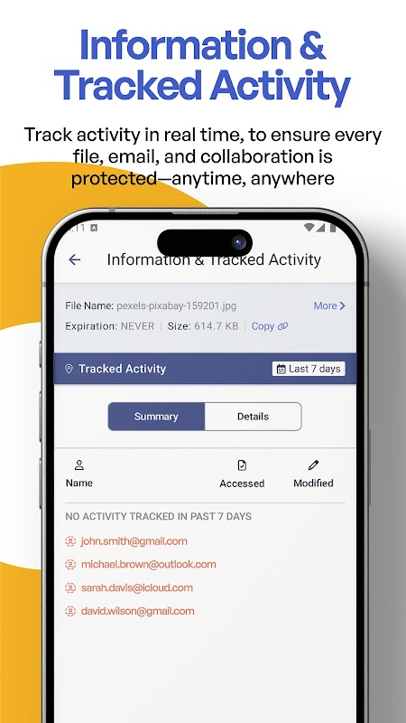 Kongsi fail dan hantar e-mel dengan mudah dan selamat. Ambil foto yang dipatuhi dan disulitkan yang dimuat naik secara automatik ke awan Kiteworks organisasi anda. Data, e-mel dan foto tidak pernah bocor ke apl, gulungan kamera atau folder lain dalam peranti anda.