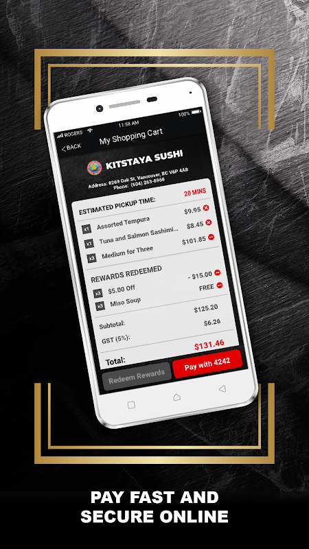 With the Kitstaya app, ordering your favorite food to-go has never been easier. Simply open the app, browse the menu, order with a click of a button and get notified when your food is ready. Earn and redeem points for rewards and discounts! Pay fast and secure online.