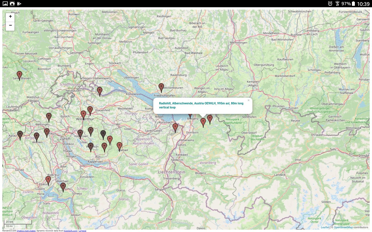 → Tekan simbol penanda untuk memaparkan pautan ke penerima KiwiSDR yang dipilih.