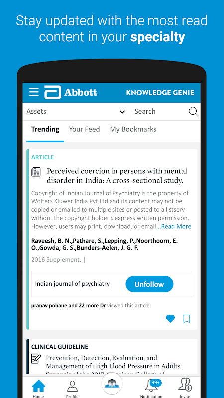 Knowledge Genie is a one-of-a-kind initiative by Abbott Healthcare Pvt Ltd that provides physicians with a single platform to access all kinds of medical information. Using Knowledge Genie, doctors can stay updated with the latest in their specialties to ensure the best clinical outcomes for their patients.