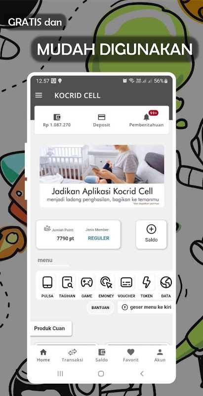 KOCRID CELL adalah aplikasi digital yang menyediakan produk pulsa,pembelian kuota, pembelian token pln,pembayaran multi tagihan di seluruh Indonesia.
