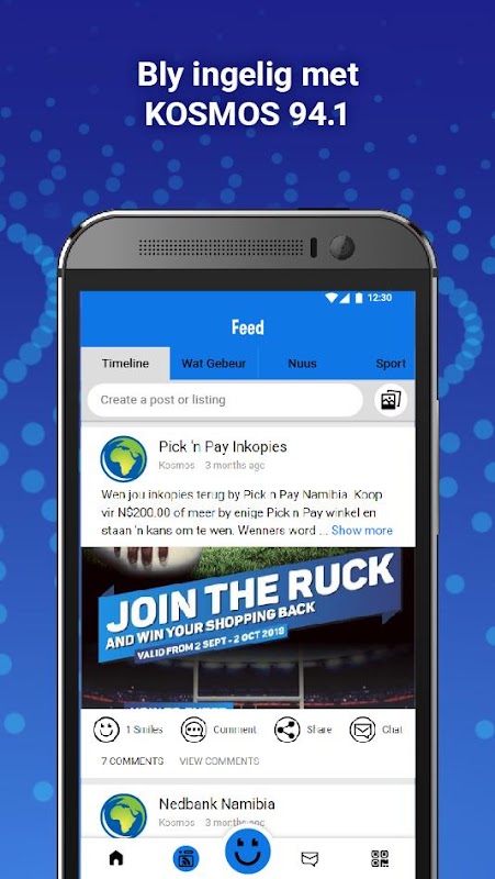 Seorang penjaga peribadi, rangkaian sosial & aplikasi kesetiaan untuk radio Kosmos, Namibia.