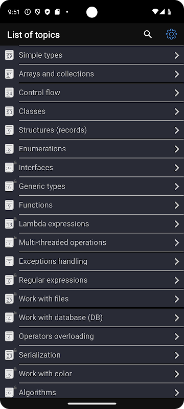 • Carian pantas mengikut kod topik atau nama.