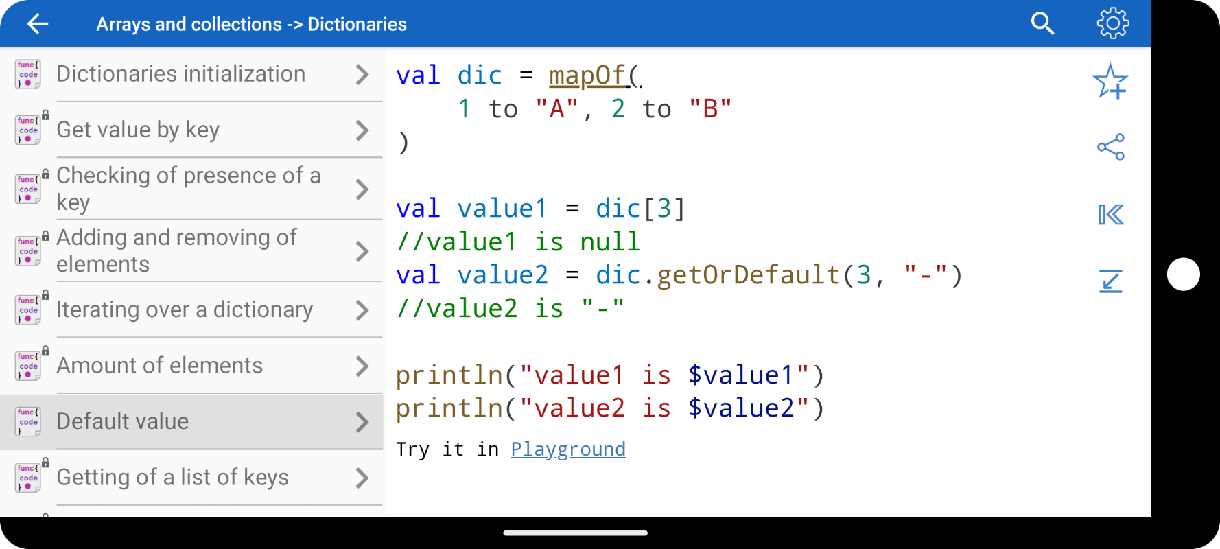 • Mengandungi direktori standard, operasi yang kerap digunakan dalam Kotlin.