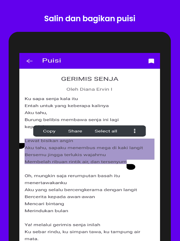 Aplikasi kumpulan puisi berbahasa indonesia, koleksi lebih dari 6000 puisi
