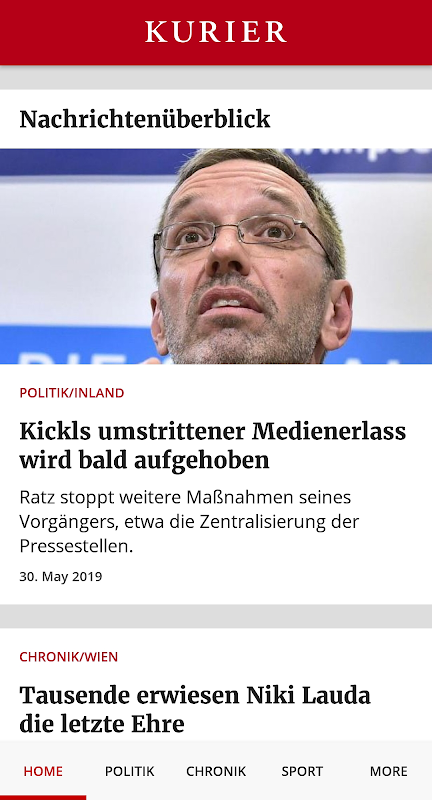 berita, galeri gambar dan video app KURIER.at menawarkan dioptimumkan untuk peranti mudah alih anda, gambaran keseluruhan berguna mengenai peristiwa-peristiwa semasa.