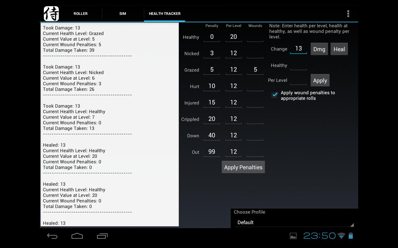 Aplikasi ini direka untuk menjadi roller dadu serta tracker kesihatan bagi Legend of Five Rings peranan permainan bermain. Ia telah dilengkapi dengan alat untuk semua selok-belok rolling yang telah ditemui setakat ini dalam sesi saya bermain.