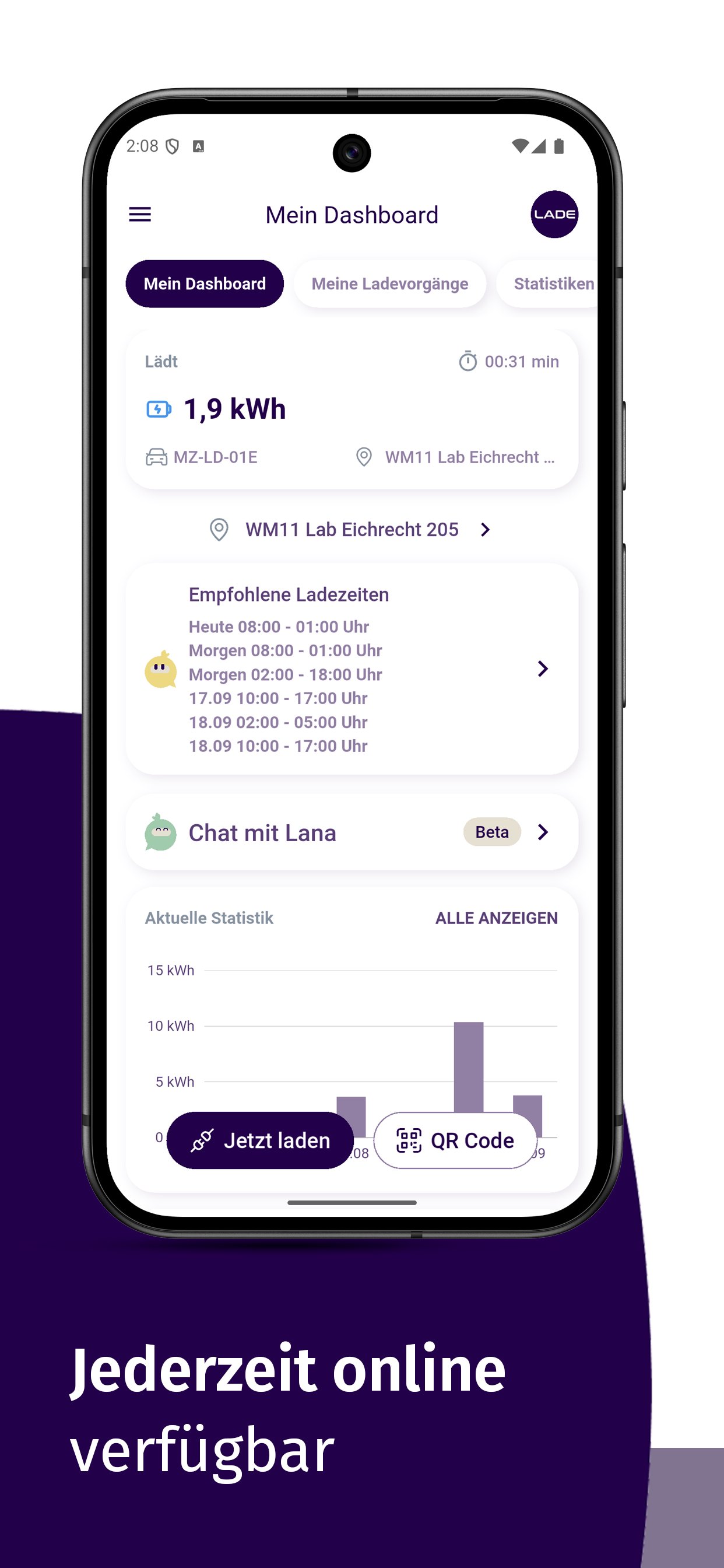 Dengan aplikasi LADE anda sentiasa mengawal infrastruktur pengecasan anda. Mudah dan mudah serta tersedia pada bila-bila masa melalui LADEcloud.