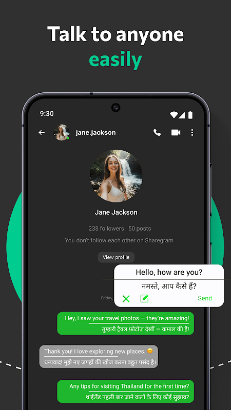 Bahasa bukan penghalang lagi . Terima kasih kepada Papan Kekunci Penterjemah Sembang, setiap pengguna boleh menaip Papan Kekunci Penterjemah Sembang dalam bahasa ibunda mereka dan mesej akan diterjemahkan ke bahasa yang mereka mahukan. Aplikasi ini membolehkan anda bersembang dalam bahasa asing tanpa perlu menyalin dan menampal teks. Alat Papan Kekunci Terjemah membolehkan anda bersembang di peringkat antarabangsa untuk perniagaan, perjalanan atau kegunaan peribadi.